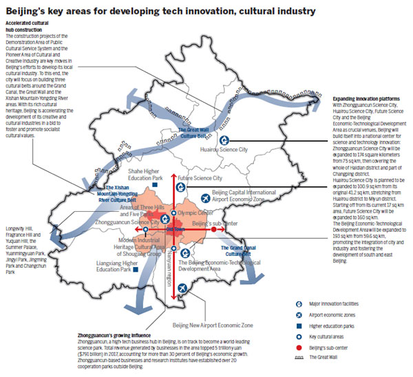 The new plan will continue to foster Beijing's Zhongguancun Science City, Huairou Science City, Future Science City and the Beijing Economic Technological Development Area - all of which are maturing into major sources of innovation.