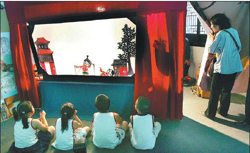 Children watch a shadow play in Chengdu.Yang Gang / For China Daily |