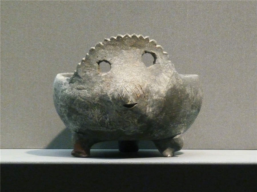 A pottery Ding, which was an ancient cooking containter from the early Warring States Period is on display at the Nanjing Museum in Nanjing, Jiangsu province, January 5, 2013. [Photo by Wang Luxian/Asianewsphoto]