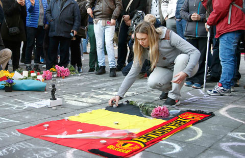An exhibition of tri-colored glazed pottery works of the Tang Dynasty (618-907) is held at the Shaanxi History Museum in Xi'an city, capital of Northwest China's Shaanxi province, March 22, 2016. About 130 tri-colored glazed pottery works selected from the dynasty's two capitals, Chang'an (present-day Xi'an) and Luoyang in Henan province, were displayed in the exhibition. [Photo/China News Service]