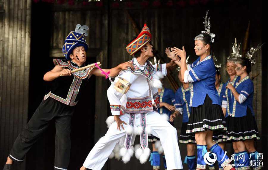 Members of the Dong ethnic group in Sanjiang Dong autonomous county, Guangxi Zhuang autonomous region celebrated the oil-tea festival on Aug 6. Festivities included the preparation of oil-tea as well as traditional drama performances. The Dong ethnic group has been drinking oil-tea since the Tang Dynasty, and it has become an important part of their diet. Oil-tea is make from tea leaves, rice, peanuts and vegetables. The tea is traditionally served when guests visit. [Photo/People's Daily Online]