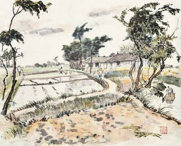 A Chinese ink painting of spring ploughing. [Photo/artron.net] |