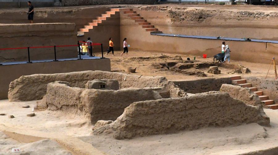 Photo taken on Aug 10, 2017 shows the excavation site of Xinzheng Gate in Kaifeng city, Central China's Henan province. [Photo/Xinhua]