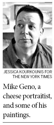 Visitors to his studio can't help having a similar response, seeing as how one wall is practically fragrant with beckoning portraits of Gouda, Manchego, Morbier, Shropshire Blue, Cheddar and mimolette.
