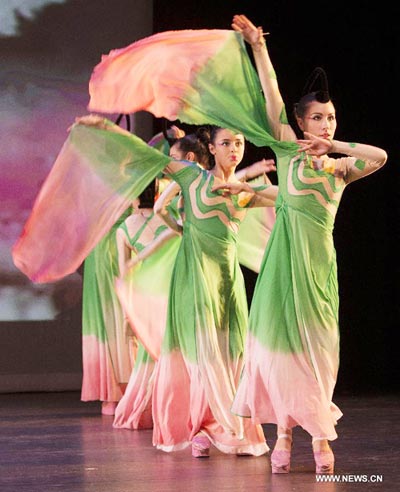 Students perform dance during a lecture of classical Chinese dance at the Columbia College Chicago Dance Center in Chicago, the United States, on Nov 14, 2013. [Photo/Xinhua]