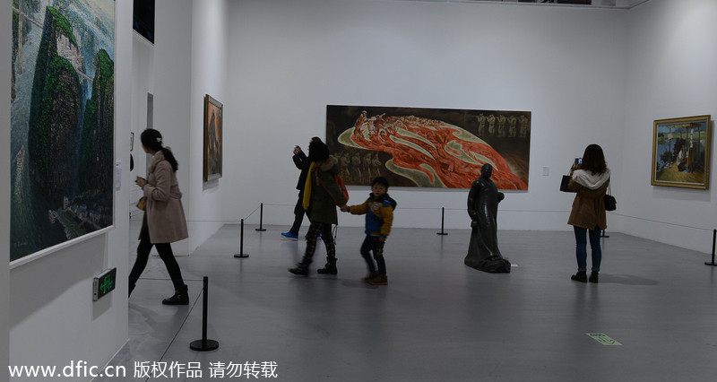 The art exhibition "Echoing – 60 years of art history in Chongqing" recently opened in Chongqing, featuring 265 pieces of art and related documents since China's official founding in 1949. The artwork on display includes traditional Chinese paintings, oil paintings, printmaking, sculptures, water color paintings and posters, which all reflect the social development of Chongqing and China spanning over 60 years.