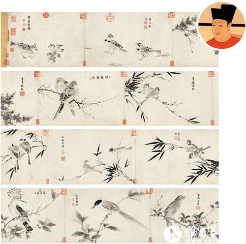 Painting by Emperor Huizong of the Song, one of the most famous of the Song Dynasty (420-479). Most subjects of his paintings are birds and flowers.[Photo/Artron.net]