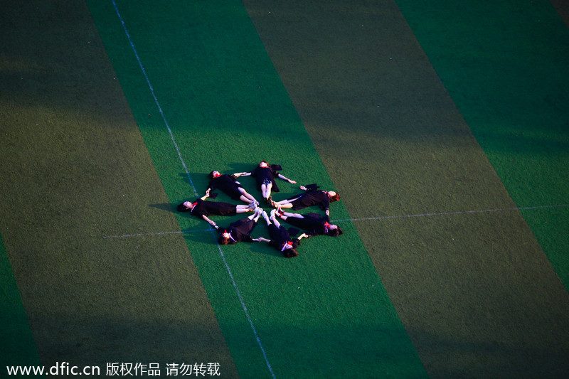 Graduates of Shandong Normal University in Shandong province pose for graduation photos on the campus, May 30, 2012.[Photo/icpress.cn]