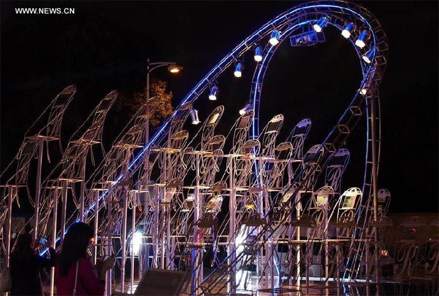 Photo taken on Nov 11, 2015 shows the theme sculpture of the Shanghai Art Fair in Shanghai, East China. The 2015 Shanghai Art Fair opened on Thursday. [Photo/Xinhua]