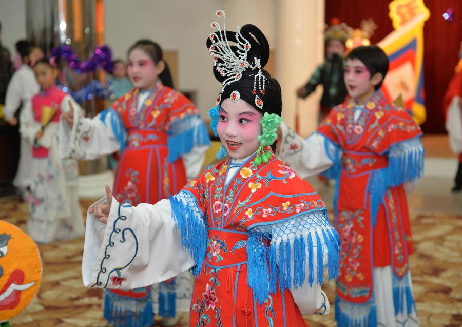 A young enthusiast of traditional Chinese Peking Opera performs a play in Hohhot, capital of North China's Inner Mongolia autonomous region. [Photo/Xinhua]