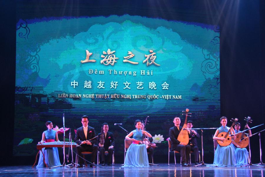 Artists from China and Vietnam, including China's Shanghai Dance Theater, Shanghai National Orchestra, Shanghai Acrobatic Troupe, Shanghai Conservatory of Music, Shanghai Symphony Orchestra and Vietnam's "Suc Song Moi" bamboo ensemble, jointly staged the "China-Vietnam friendship art performance " in Vietnam's capital Hanoi on Friday night. [Photo/Xinhua] "Art performance like this will help peoples of Vietnam and China know more about cultural feature of each country, thus serving as a cultural bridge linking the two nations," Hoang Dung, a 57-year-old Vietnamese audience told Xinhua after enjoying the performance themed "The Night of Shanghai". During the show, audiences were able to enjoy Chinese cultural features as well as the fusion of Chinese and Vietnamese music. "Vietnam and China share similarities in culture, therefore music and art of the two countries are easy to combine," said Dung. |