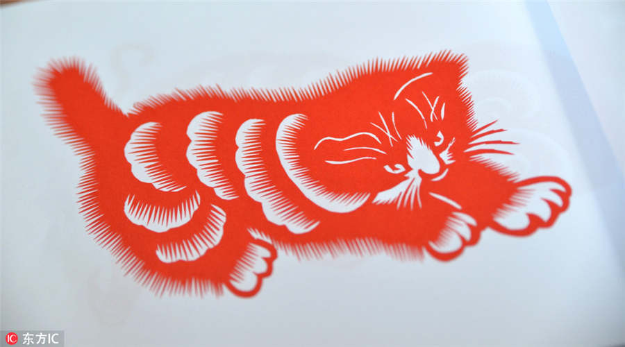 Folk artist Li Yiling's paper cut work Cat.[Photo/IC]