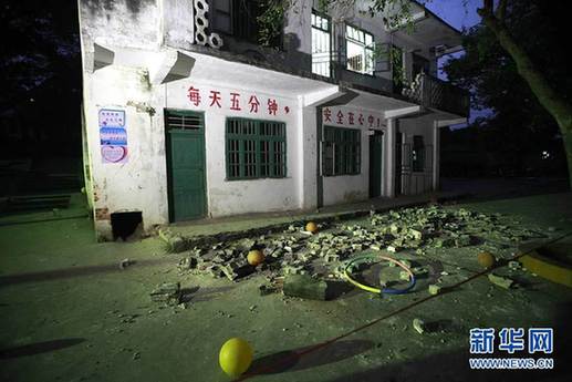 这是10月21日拍摄的教学楼护栏坍塌事故现场。当日下午4时40分左右,广西柳江县洛满镇洛满中心小学一栋两层教学楼二楼走廊护栏发生坍塌事故。截至21日晚9时,共有27名学生坠落不同程度受伤,4人伤势较严重。新华社发