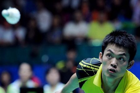 羽毛球男子团体决赛,中国选手林丹在比赛中