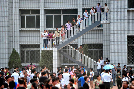 2012年5月20日,济南外国语学校举行2012年初中招生测试,众多陪考家长守候在考场门前。上午10点半,众多家长拥堵在考点门外等候。由于原定10点半结束的考试一直持续到中午12点多,数千名家长拥堵在校门前等候考生,有些心急的家长开始喧嚷起来。学校工作人员爬上学校大门,拿着喇叭安抚家长。