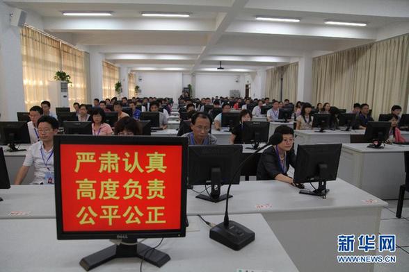 6月12日,在安徽大学高考网上评卷点,高考语文科目评卷在紧张有序进行。近日,记者来到安徽大学高考网上评卷点现场探访。据了解,所有评卷员经过严格遴选,由省属高校专家和重点中学骨干教师组成。进行正式评卷前,他们均需参加岗前培训和资格测试。新华社发
