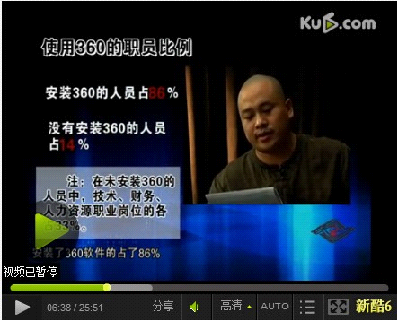 在“网眼八斋”发布的视频“网络大破解:3721的流氓,360的坏”中,市场调研发现,未安装360的工作人员的岗位主要分布在技术、财务和人力资源。这意味着,企业内部设计技术资源、财务机密和人事机密的岗位都自觉的拒绝了360产品的服务。
