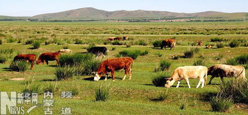 内蒙古东部的锡林郭勒盟正蓝旗境内的草原风光(7月13日摄)。