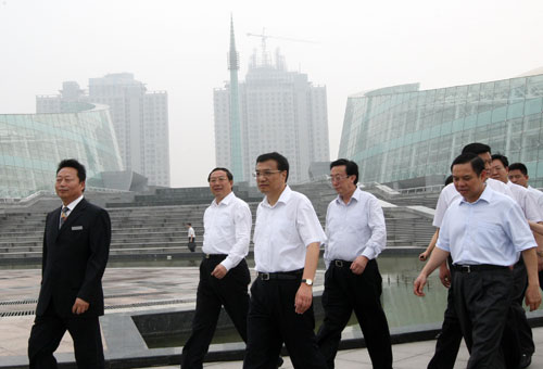 2009年6月17日至20日,李克强在河南考察。图为李克强在郑东新区考察城市建设。
