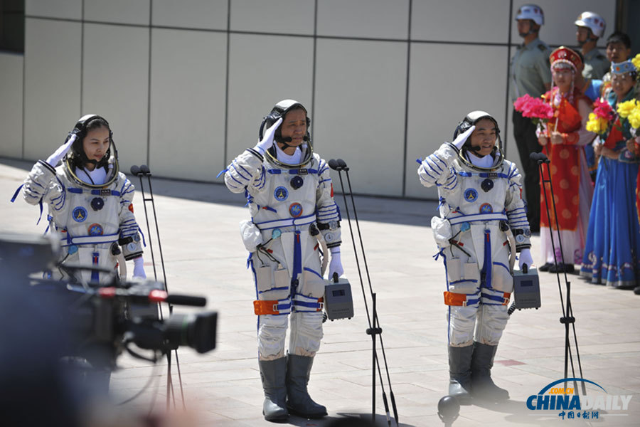 图片回顾:神十航天员亮相出征仪式 火箭升空