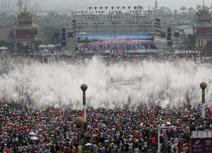 西双版纳:万人泼水喜迎傣历新年 欢腾场面蔚为壮观