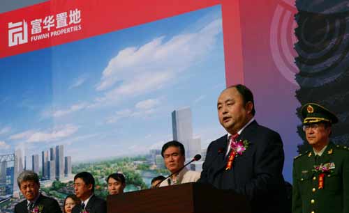 | 北京市副市长陈刚、全国政协港澳台侨副主任、富华国际集团董事局主席陈丽华等为新城建设开工典基。 |