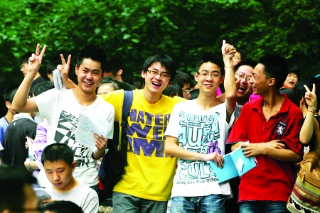 昨日,育才中学,考生们欢快地走入考场。 记者 梁杰 摄
