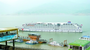 三峡邮轮的巨无霸———“黄金1号”正在向三峡库区景区码头停泊。记者 吴国富 摄