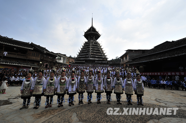 9月18日至9月20日,素有“侗歌窝”美誉的贵州从江县小黄村举办“传歌节”。图为侗族大歌千人大合唱。(张琪 摄)
