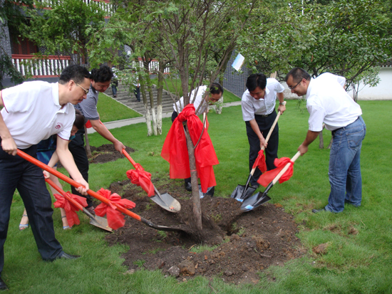 参加捐赠仪式的嘉宾现场培植红豆杉