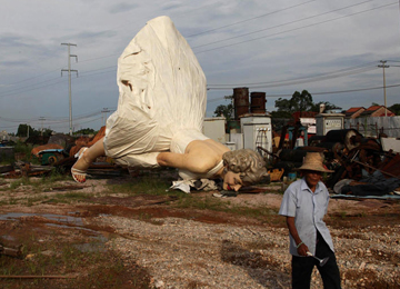 广西贵港巨型梦露雕像矗立6个月后被拆