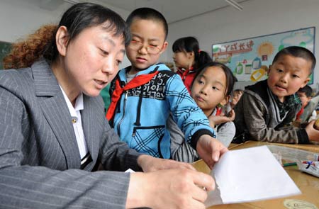 魏桂玲在给学生们讲解问题(5月11日摄)。新华社记者 王建威 摄
