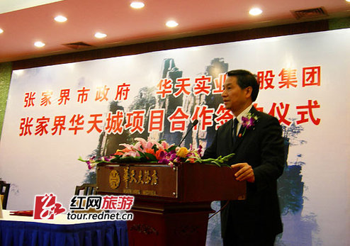 (张家界市政府与华天实业控股集团举行了“张家界华天城”签约仪式。)