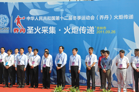 9月26日是第十二届全国冬季运动会倒计时100天的重要日子,十二冬会圣火采集仪式暨吉林市火炬传递活动于在吉林市北山平安钟楼前举行,国家体育总局副局长段世杰、吉林省副省长陈伟根出席活动。