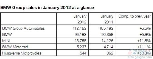 宝马营销总监Ian Robertson透露,宝马集团2012年1月全球销量为112,163辆,比去年的105,193辆同比增长6.6%。对比2011年的两位数增长比例明显放缓。