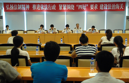 8月8日是全国海关系统法制宣传日。沈阳经济技术开发区海关围绕“弘扬法治精神,推进依法行政;紧紧围绕‘四好’要求,建设法治海关”的主题,从8月8日至8月13日,对驻区企业、保税仓库、报关公司等服务对象开展法制咨询、法制讲座等宣传活动。