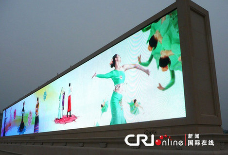 2010年9月6日傍晚,北京,天安门广场人民英雄纪念碑北侧,两块新近亮相大理石基座的LED巨屏开始调试,以新颖靓丽的视频画面迎接国庆节的到来。