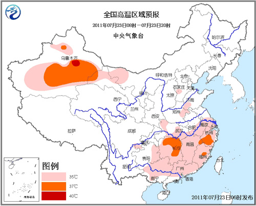 23日是二十四节气中的“大暑”。大暑,顾名思义,就是一年中最热、气温最高的时期。似乎为了与这一节气的含义相呼应,南方地区刚刚崭露头角的高温天气23日将继续扩大。中央气象台23日晨6时继续发布高温蓝色预警:预计江南、华南中北部、江淮南部、江汉西部和东南部等地有35℃以上的高温天气,其中,湖南中北部、浙江南部、江西东北部、福建中部等地的部分地区气温可达37℃。