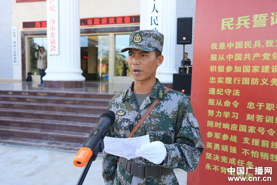 组图:三沙市组建海上民兵连 女兵挎56步枪宣誓