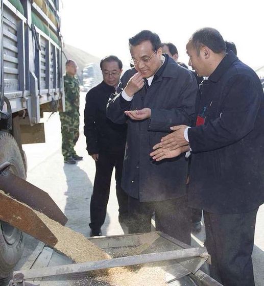 李克强咀嚼谷粒测水分,称赞大米是金(新华社 黄敬文 摄)