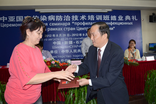 9月25日,在中亚国家传染病防治技术培训班结业典礼上,培训班学员代表的一席话赢得了在场学员的一直赞赏和热烈掌声。