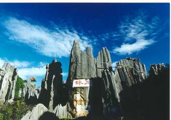 景点简介:石林风景名胜区.石林地质公园位于云南省石林彝族自治县境内,距省会昆明市约78公里,保护区总面积约350平方公里。 建园于1931年的石林公园,1982年被国务院列为中国首批国家级风景名胜区之一,是我国著名的旅游胜地,也是世界闻名的喀斯特地区之一,被人们赞誉为“天下第一奇观”。大约在2亿多年以前,这里是一片汪洋大海,沉积了许多厚厚的大石灰岩。经过了后来的地壳构造运动,岩石露出了地面。约在200万年以前,由于石灰岩的溶解作用,石柱彼此分离,又经过常年的风雨剥蚀,形成了今天这种千资百态的石林。石林地区,奇峰怪石,平地挺起。有的矗立如林,有的峻拔如墙。有的石峰高达三四十米,也有的只有几米。