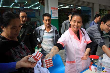 当日(28日),巧家县残联、卫生局、计生局和妇联联合在县城新华路开展“残疾预防,共享和谐”残疾预防宣传活动,向过往群众宣传残疾预防相关知识及叶酸、玉川等药物使用常识,为过往群众义诊200余人次,发放宣传单2000余份,免费向育龄群众发放避孕药16920片和避孕套5500只。