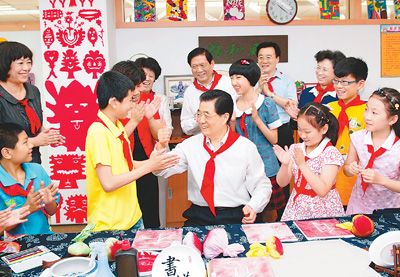“六一”国际儿童节到来之际,中共中央总书记、国家主席、中央军委主席胡锦涛5月31日上午前往北京市东城区少年宫考察,亲切看望在这里参加活动的小朋友们,代表党中央,向全国各族少年儿童表示节日的祝贺,向全国广大少儿工作者表示崇高的敬意。