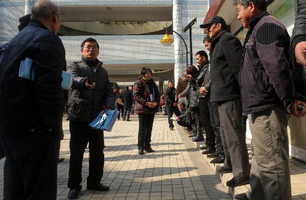 1月19日,一些选民代表利用会议间隙讨论财政预算。