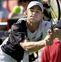 "It's been a great week and a really tough final," he told reporters. "It's hard to kick the ass of someone you really like." Fish, 21, was seeking the first title of his career but, despite matching Roddick stride-for-stride in an absorbing encounter, he failed to convert his two break and match points at 5-4 in the third set. Roddick went on to claim his 20th victory in 21 matches since losing in the semi-finals of Wimbledon in July. It was also the first time since Patrick Rafter in 1998 that anyone had scooped back-to-back Masters Series victories at Montreal and Cincinnati. TIMING AWRY That year, the Australian went on to win the US Open, and 20-year-old Roddick will be hoping to repeat that feat when the year's final grand slam begins on August 25. It looked as though a combination of fatigue and the awkward task of trying to beat his friend and former high school colleague might bring Roddick down on Sunday. His timing awry, he surrendered a break of serve in the fifth game of the first set, allowing Fish -- who started with the confidence of a player enjoying the best week of his career -- to establish the advantage. But slowly Roddick chipped away at Fish's comfort zone. Two break points for Roddick went begging at 4-3 in the second set but he regrouped to take the tiebreak 7-3 after Fish betrayed the first sign of nerves with a wild forehand. One moment in the tiebreak -- when the pair exchanged a 'high-five' after Fish lost a stunning point -- also relieved the tension and brought the crowd to its feet. The ebb and flow of the contest then saw Fish back in control with two match points at 5-4 in the decider but, under immense pressure, Roddick escaped with a service winner and an ace. The drama demanded another tiebreak as a finale but it again proved unlucky for Fish. A breathtaking crosscourt pass gave Roddick a mini-break at 3-2 and he never looked back.