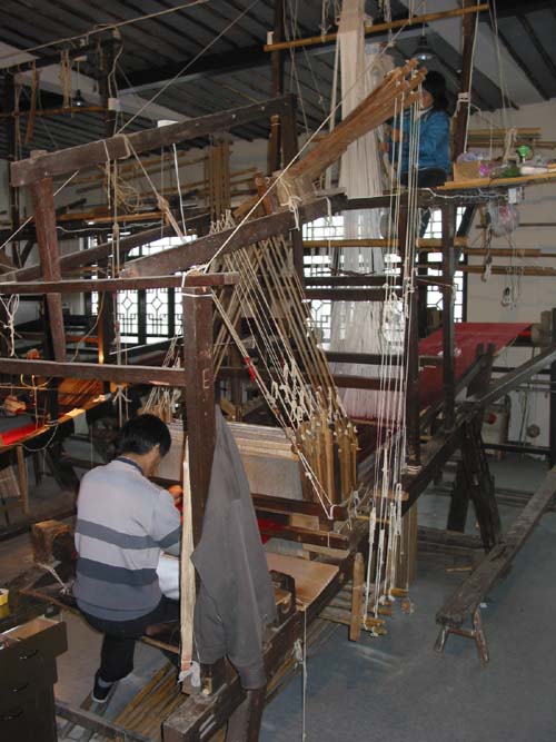 Nanjing Yunjin (brocade) has a history of over 1500 years with regard to the hand-weaving technology. Its wooden-loom Zhuang Hua represents the history of silk weaving lasting for over 4700 years. This is the traditional hand-weaving technology by means of human memory that cannot be replaced by machines, the only technology of its kind handed down to the modern times in a history of over 3000 years concerning brocade production. Najing Yunjin technology, always taught by hand and oral instruction, is handed down from generation to generation. Among ancient silk fabrics, "Jin" represents the fabric of the highest technology. Nanjing Yunjin epitomizes the brocade craftsmanship over the past years. Ranking first among three major kinds of brocade in ancient China, it was a royal tribute respectively in the Yuan, Ming and Qing Dynasties. Due to its rich connotation of culture, science and technology, it is regarded by experts as the last milestone in the history of brocade craftsmanship in ancient China, publicly acknowledged as an "Oriental gem" and a "Wonder of China". It is also one of the most precious historic and cultural heritages of the Chinese nation and the world. Nanjing Yunjin is woven by a traditional Da Hua Lou draw-loom, 5.6 meters long, 1.4 meters wide and 4 meters high, through coordinated manual operation of a Zhuang Hua worker and a weaver. The draw-loom is made up of 1924 parts. The Zhuang Hua worker, sitting on the top of the loom, is responsible for lifting the wrap while the weaver, sitting under the loom, is in charge of weaving the weft, applying gold-threads and colors. As Yunjin was specially used to weave the dragon-robes and official clothes for a long time, its production was conducted at all costs for perfection. As a result, its designs are featured by colorful varieties, big patterns, beautiful shapes, gorgeous and bold colors, particularly golden color, free color matching and changeable tints. The art of Yunjin has reached the peak since its craftsmanship has brought the hand-woven techniques to a point of perfection as well as the color matching and weaving techniques to a new height. The wooden-loom ZhUang Hua with hand-woven technology is the only remainder of that epitomizes the achievements of brocade weaving under this special condition. In particular, Zhaungjin, Zhauang Cai and Zhaung Kongque Yu as royal utilities are featured by the three-dimensional effect in relief and that their glamour of expressing the aesthetic realm, culture and art reflect the unique cultural and mental pursuit of Chinese nation, hence demonstrating the integration of science, technology and aesthetics. The cultural and artistic styles of Nanjing Yunjin can be bogged down into the following aspects: the charm of the entire artistic tableau, the gorgeousness of harmonious halo, the exquisiteness of the principle for the creation of weaving technology and the unusual beauty of the patterns symbolizing auspiciousness. Its styles and the school it represents are rare both in China and the world.