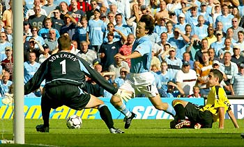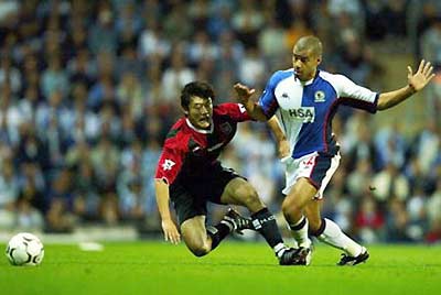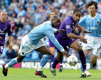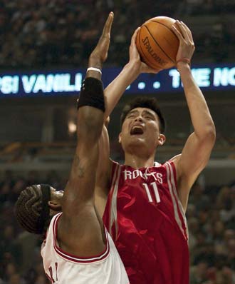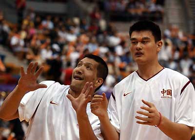 | | |  | | | Houston Rockets center Yao Ming of China (R) shoots the ball over Chicago Bulls center Eddy Curry, during their NBA game in Chicago, November 3, 2003. Rockets annihilate Bulls 98-66. Yao Ming scored 12 with 7 rebounds. [Agencies] | | | | | | | | | | | | |  | | | NBA LA Clippers' Chinese basketball star Wang Zhizhi is seen after a practice session in Saitama, north of Tokyo October 28, 2003 ahead of the 2003 NBA Japan Games, the season opener between the Clippers and the Seattle SuperSonics. The games will be held October 30 and November 1 at Saitama Super Arena, venue for the 2006 FIBA World Basketball Championship for Men. On far right is Wang's Clippers teammate Olden Polynice. [Reuters] | | | | | | | | | | | | |  | | | Manchester City's French defender David Sommeil (L) battles with Tottenham Hotspur's French striker Freddie Kanoute as Chinese defender Sun Jihai (R) watches during their English premier league match at the City of Manchester Stadium September 28, 2003. [Reuters] | | | | | | | | | | | | |  | | | Manchester City's Chinese midfielder Jihai Sun (C) is brought down for a penalty by Aston Villa's Peter Whittingham (R) watched by goalkeeper Thomas Sorenson (L) in the English premier league match at the City of Manchester Stadium, September 14, 2003. Manchester City won the match 4-1. [Reuters]