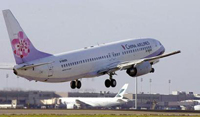 | | A China Airlines Boeing 737-800 takes off from Taoyuan's Chiang Kai-shek International Airport, during late September 2002, in Taoyuan, 40 kilometers south of Taipei. Taiwan approved a plan Wednesday to allow indirect charter flights to mainland for the Lunar New Year holiday, a largely symbolic but potentially significant move toward direct air links across the Straits. [AP] |