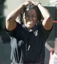 | | A law enforcement officer reacts after the first tower of the World Trade Center fell in New York City early September 11, 2001. [Reuters] |
